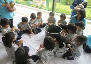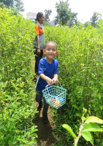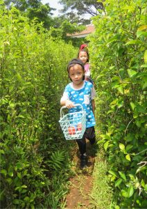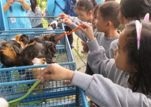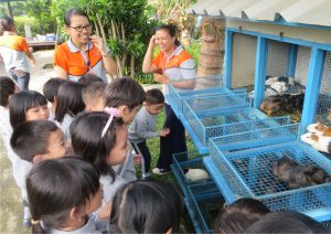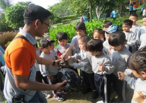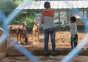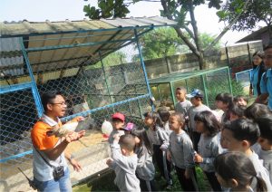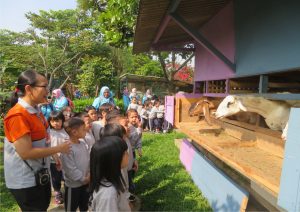 Di sana, anak-anak mengikuti tour di dalam Mini Zoo. Mereka senang sekali bisa melihat dan memegang langsung aneka hewan.
