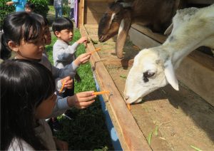 Selain mengikuti tour, anak-anak juga memberi makan langsung aneka hewan di Mini Zoo.
