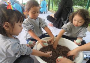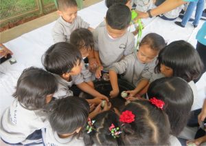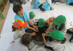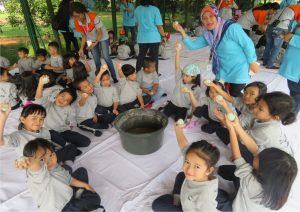 Anak-anak juga praktek langsung membuat telur asin dari mempersiapkan telur bebek, menggosok telur dengan amplas & terakhir membungkus telur dengan abu gosok yang sudah dicampur garam.