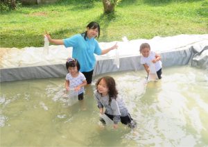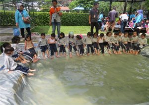 Dan yang paling ditunggu-tunggu adalah kegiatan menangkap ikan. Anak-anak excited sekali mencari ikan sambil bermaiin air.