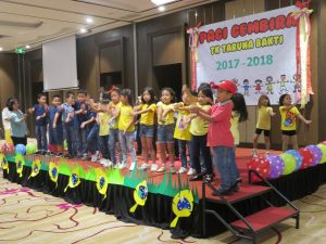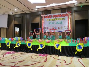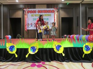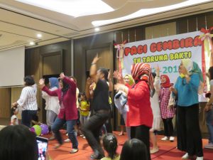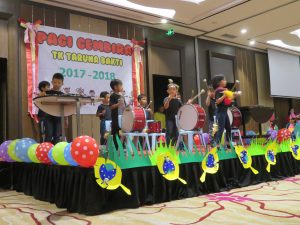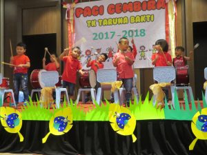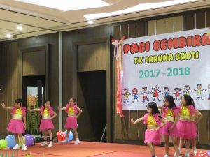 Di acara Pagi Gembira ini, para peserta didik berkesempatan untuk menampilkan bakatnya di bidang seni hasil dari mengikuti kegiatan ekskul di TK Taruna Bakti, antara lain yaitu pencak silat, perkusi, tari modern, tari tradisional dan menyanyi. Acara Pagi Gembira ini ditutup dengan penampilan tari Gemu Fa Mi Re dari para orang tua peserta didik.
