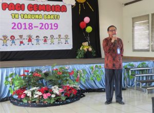 Sambutan dari Ibu T. Ningsih, M.Pd – Kepala Unit KB & TK Taruna Bakti